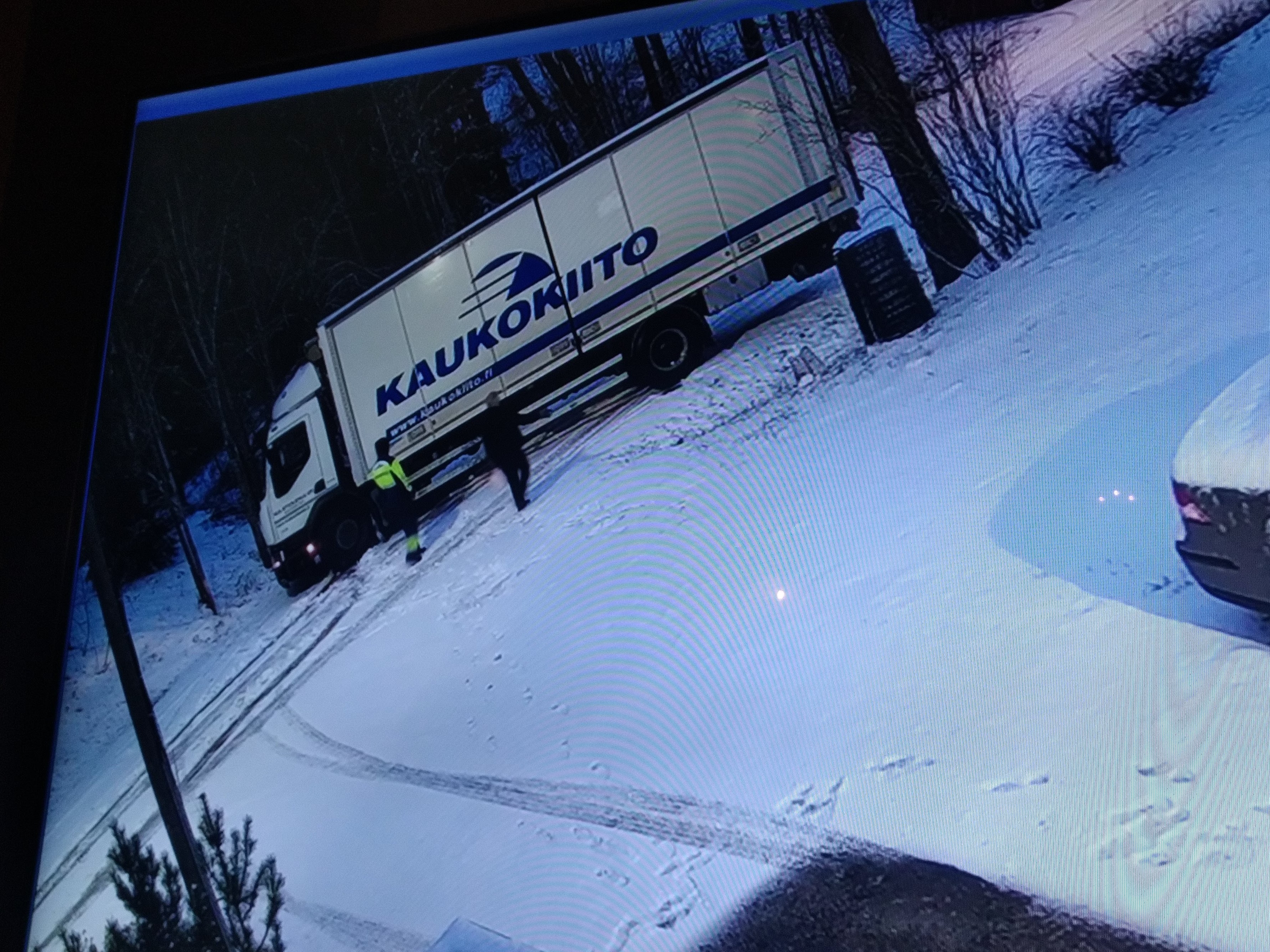 Torstai 25.11 oli onnettomuus enemmän kuin lähellä kun jakeluauto lähti luisumaan taaksepäin ja päätyi lopulta ojaan, tilanteen onni oli ettei kukaan jäänyt alle eikä tien tuonpuoleinen oja ole jyrkkäreunainen eikä syvä. Tuotteet jotka ko. auton piti yritykselleni tuoda jäivät toimittamatta ja jouduin ne itse hakemaan huolintayhtiöltä. Viime vuonna mätin säkkikaupalla sepeliä tuohon rinteeseen, että autot pääsee perille.
