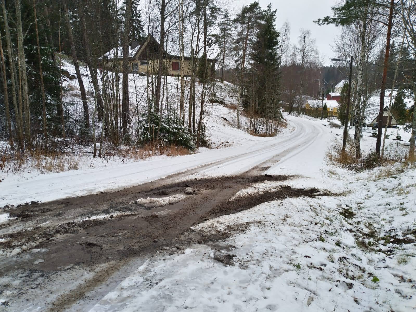 Ymmärrän täysin, ettei ensilumia kukaan halua/ välttämättä voikaan aurata hiekkatieltä, mutta nämä jyrkät mäet vaatii erityistä tarkkuutta kaikilta!
